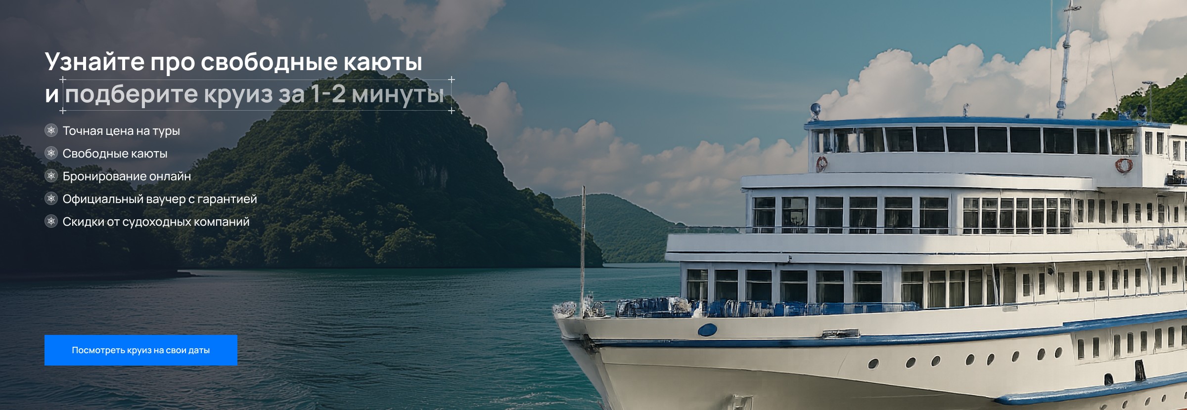 Приглашаем в морские круизы из России, Европы и Азии в 2025 и 2026 году на шикарных круизных лайнерах. Выбирайте туры на парусных яхтах, классических теплоходах и судах новаторского флота на сжиженном газе. К услугам гостей – комфортабельные номера со всеми удобствами от Королевского сьюта до Стандарта, а также номера для маломобильных гостей.